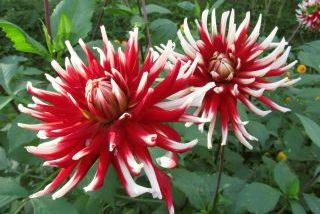 sytě červená s bílými špicemi, výška až do 120 cm,