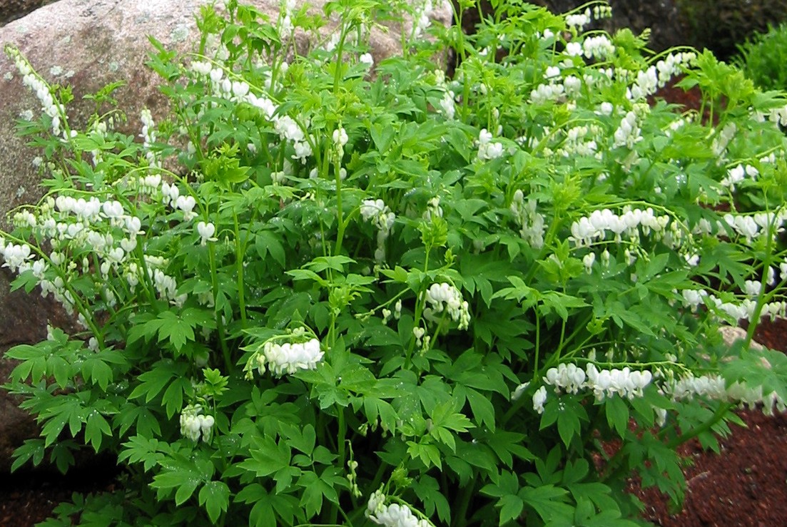 srdcovka je již dávno osvědčená trvalka s bílými květy na jaře, velmi vhodná i řezu, sázíme do polostínu, výška 50 cm, v létě brzy zatahuje a tak je dobré ji kombinovat s některou
