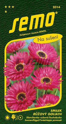 nesmrtelka (Helipterum roseum) s velkými květy v jasně růžové barvě, barva květů výrazně kontrastuje s černým středem, výška 40cm, 0,5g - 170 semen