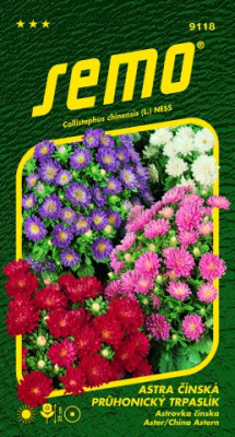 Velmi atraktivní, větvená astra (Callistephus chinensis ) vysoká 20 - 25 cm, kompaktní vzrůst, bohatě kvete nevelkými plnými květy. Směs bíle, růžově, šarlatově a modře kvetoucích kultivarů.